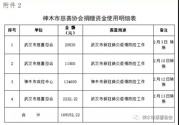 2、神木市慈善协会捐赠资金使用明细表见附件2