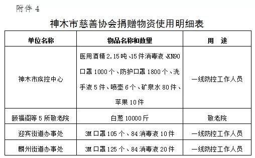 4、神木市慈善协会捐赠物资使用明细表见附件4